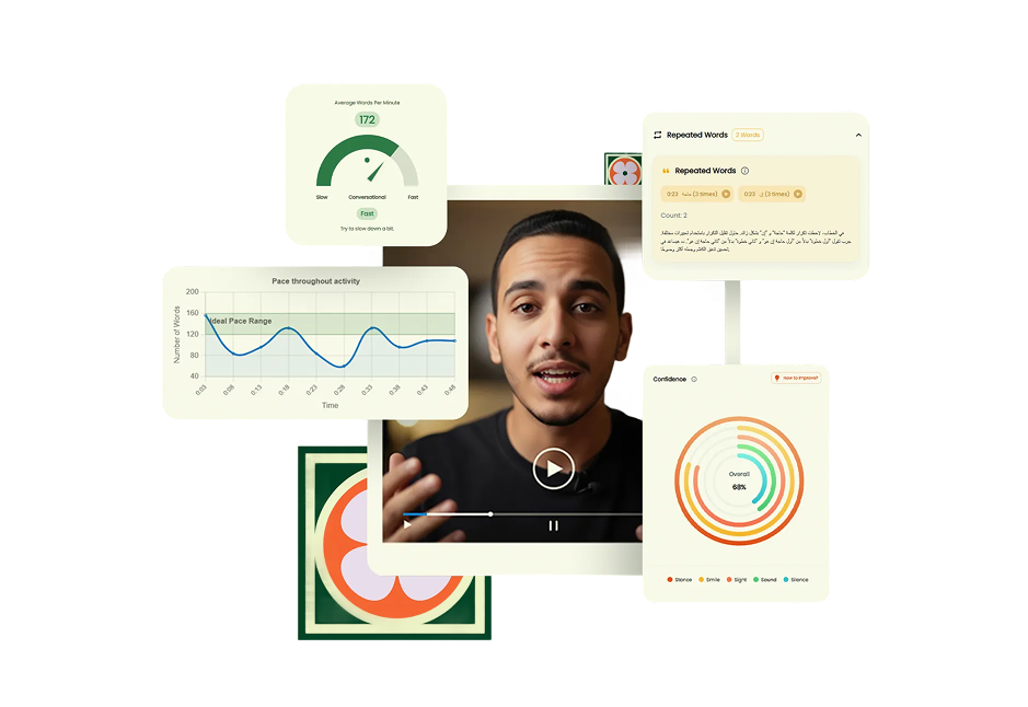 A: Our AI analyzes audio and video to highlight measurable patterns — pitch, pace, filler words, body language cues — and suggests practical exercises. We continuously improve our model accuracy with anonymous user data and inputs from our subject matter experts and communication coaches.